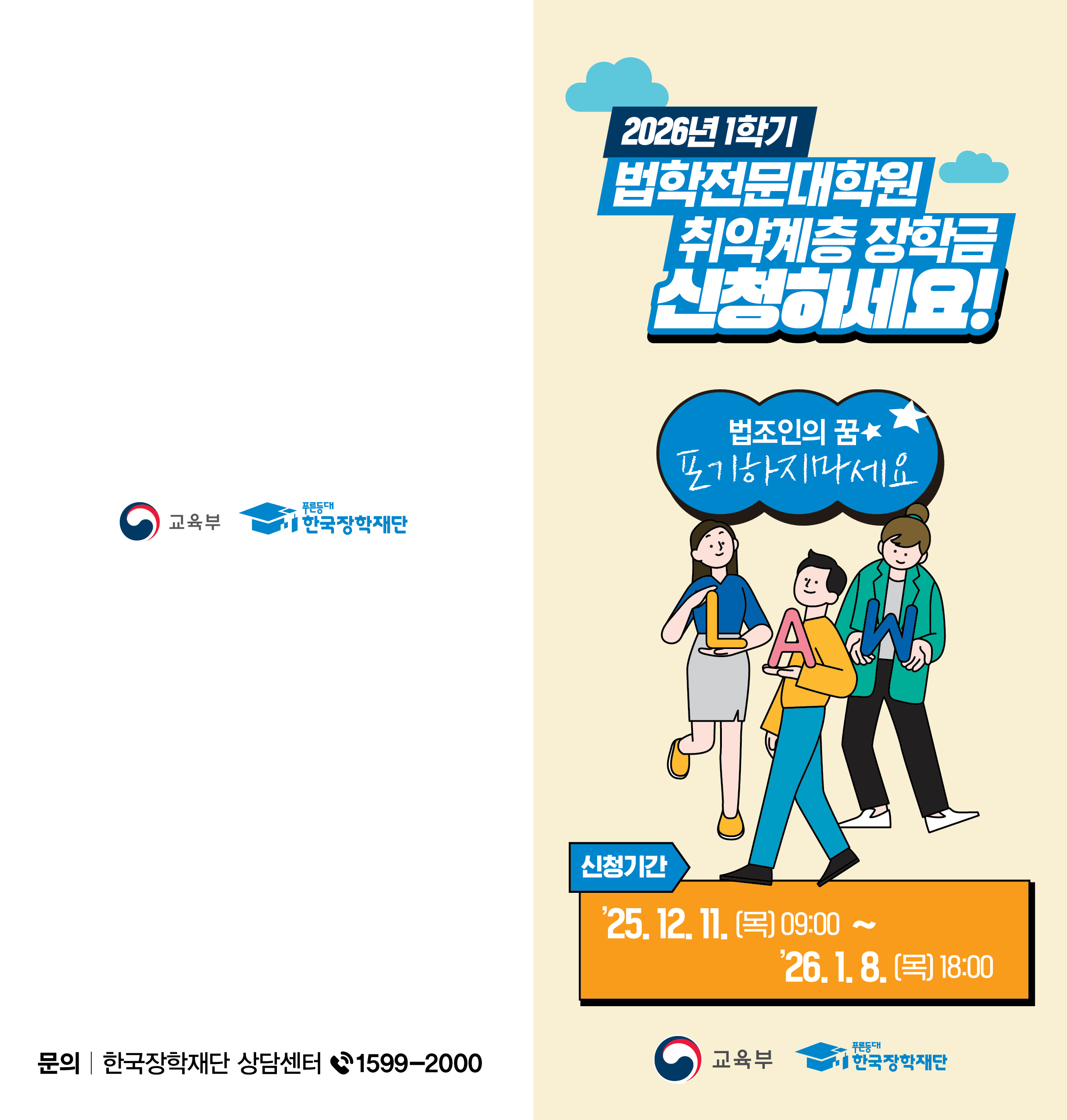 [공지] [장학]2026학년도 1학기 법전원 한국장학재단 장학금 신청 안내(예비신입생 포함)